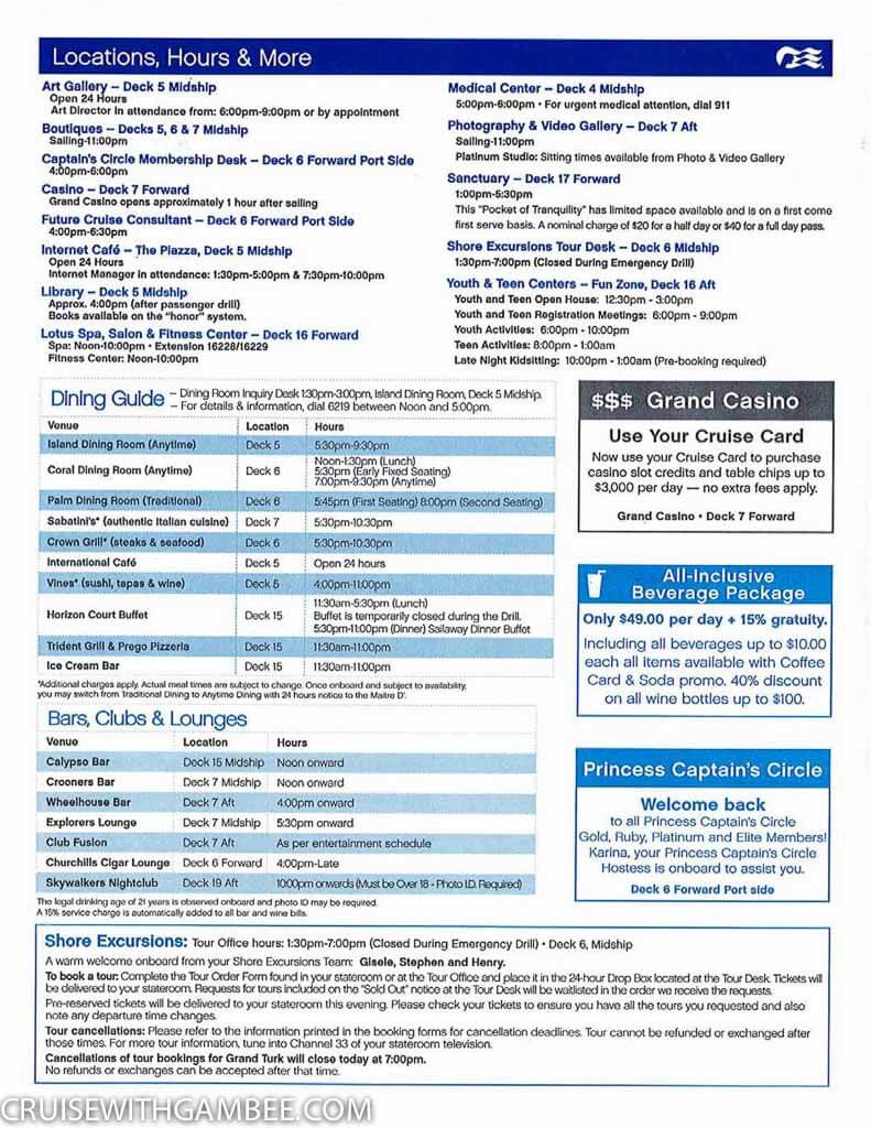 Caribbean Princess Patter Daily Activities