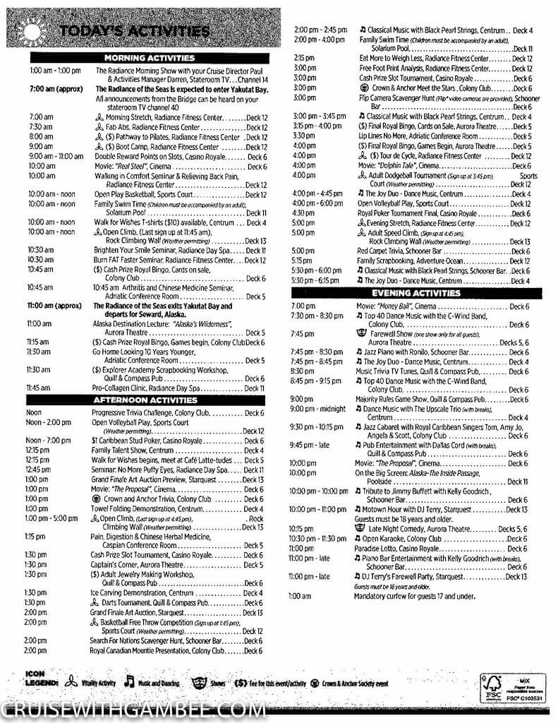 This is the Radiance of the Seas Cruise Compass to help you plan entertainment, activities, spa, specialty venues, pool times, internet and much more. It is good to know what the cruise will be like ahead of time so you’re able to make the most out of each day of your family vacation.