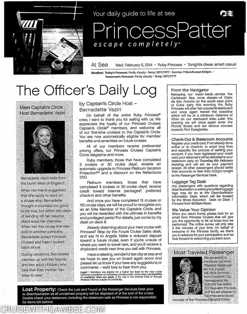 Thank you for visiting our Ruby Princess Patter Daily Activities page.